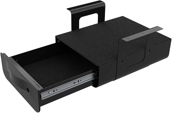 こちらもサンワダイレクトなのだけど、ねじ固定ではなくクランプ取り付け式。取り付けは最も手軽にできるけど、引き出しの特性上、手前側にクランプが来てしまうので見た目的にはイマイチ。